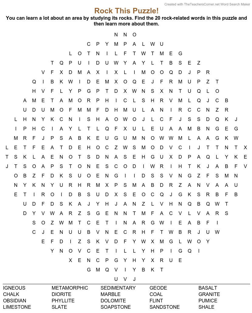 Rock Wordsearch created by Kathryn Carroll at Celebrate Picture Books |